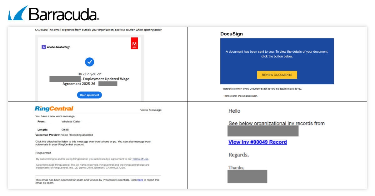 Los analistas de amenazas encontraron una amplia gama de correos electrónicos de phishing que conducen a Whisper 2FA, rotando marcas conocidas y de confianza y utilizando pretextos urgentes para maximizar su éxito.