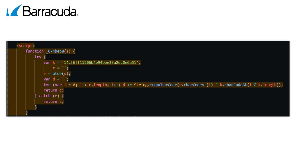 - Enmascaramiento XOR: Este es un método de cifrado simple que compara cada letra o número en el mensaje con una clave secreta y luego lo cambia según una regla que cifra cada byte de datos contra una clave repetitiva (14cf6ff11206b4e94bee33a2ec0e6a51), que está representada por ‘Var K =’, única para cada página de phishing.